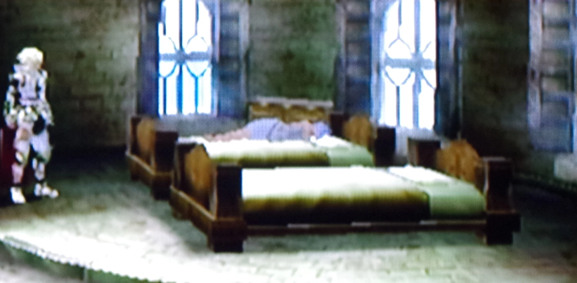 The bed is where Aeron is able to sleep, allowing you to change the time of day. This will cause Elena to be doing different things in different places. See Elena's Routine. This also allows Aeron to recover health. The longer you sleep, the more health he recovers. The bed is located in the living area under the landing on the second floor.