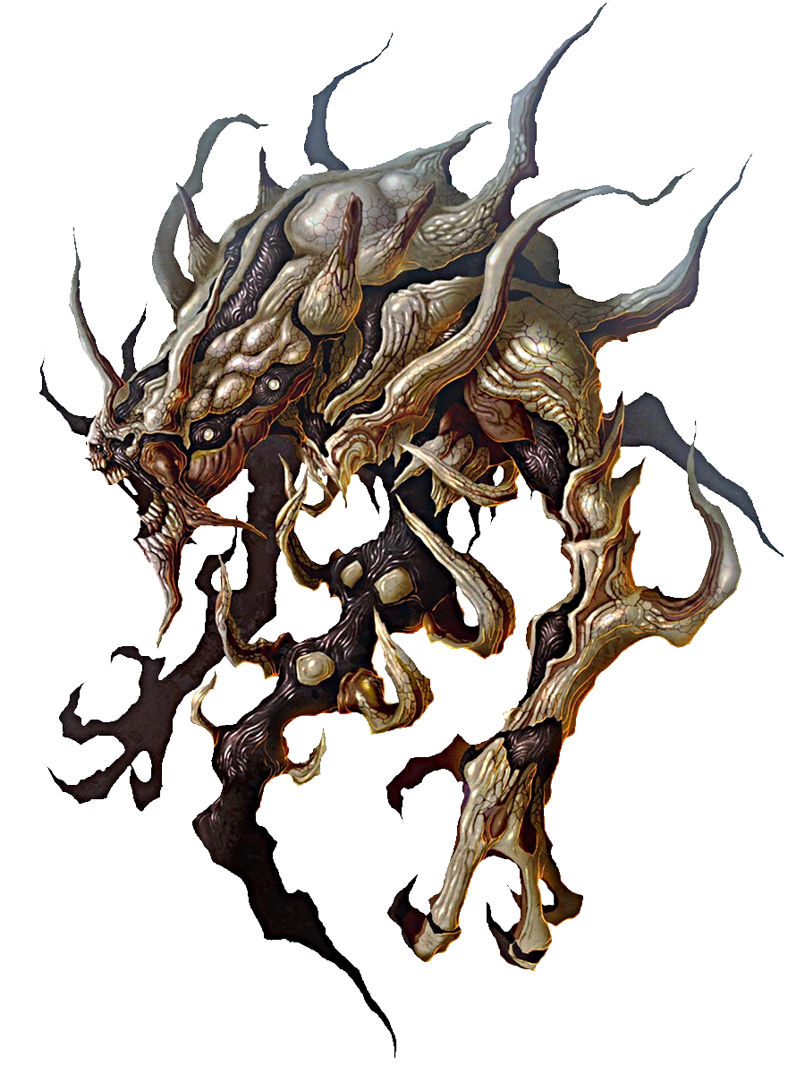 Zeron: Bado Shub-Niggurath = No. 0: Shub-Niggurath: Shub-Niggurath is a deity from the Cthulhu Mythos. The Cthulhu Mythos is a shared fictional universe, originating from the works of American horror writer H. P. Lovecraft. Shub-Niggurath is often associated with the epithet "The Black Goat of the Woods with a Thousand Young," however it's possible that the aforementioned "Black Goat" and "Shub-Niggurath" are actually separate entities. Her physcial apperance was never described by Lovecraft, but many artist depictions exist. Nonetheless, Zeron's final form does look a lot like something you'd expect to see in a Lovecraft story.